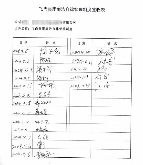 三是強化威懾監(jiān)督。為深入推進廉潔文化建設(shè),暢通監(jiān)督渠道,有效約束干部員工堅持原則、恪守規(guī)矩,嚴格按照黨紀國法辦事,清清白白做人,老老實實做事,營造風(fēng)清氣正的企業(yè)文化生態(tài),集團和各成員企業(yè)鼓勵員工積極投訴、舉報廉潔自律違紀行為,并將投訴、舉報渠道和方式寫入《廉潔自律管理制度》中。蕪湖飛尚材料有限公司通過設(shè)立投訴舉報箱,多渠道暢通投訴舉報方式。